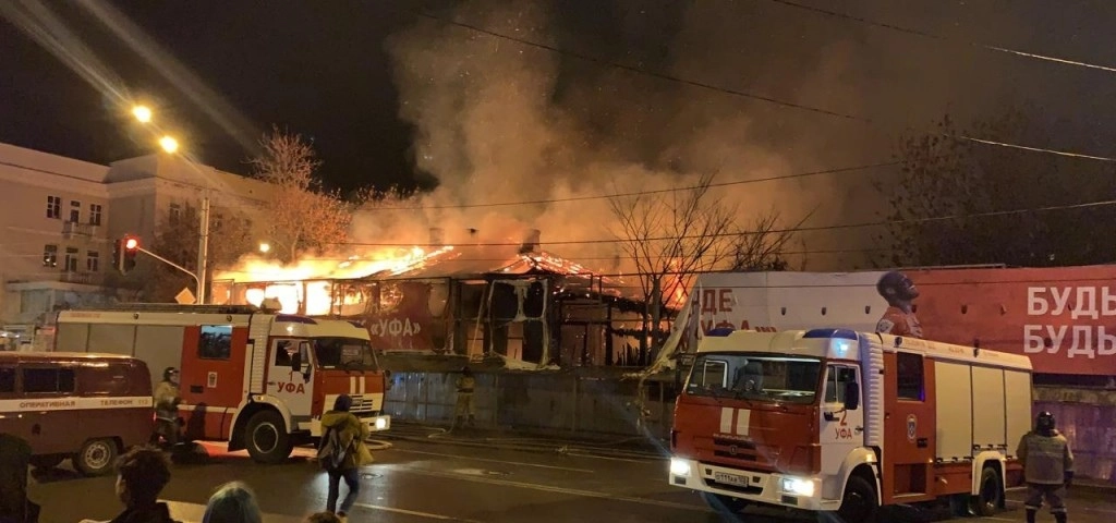Любопытно, что фасад сгоревшего строения украшал транспарант, призывавший «быть с „ФК Уфа“». Уфимская команда в прошлом матче «сгорела» в Тамбове со счетом 0:3.