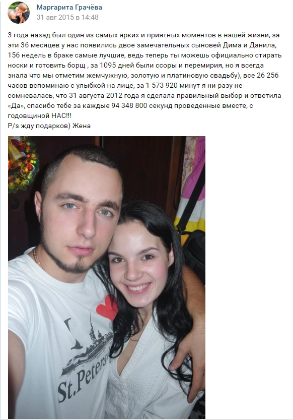 Дмитрий и Маргарита встречались со школьных времен. Поженились, затем на свет появились двое сыновей. Со стороны они казались образцово-показательной семьей. Регулярно в соцсетях появлялись их совместные фото.