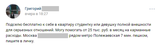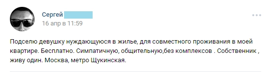 «Подселю в квартиру девушку. Подробности в личку», — пишет автор другого объявления.
