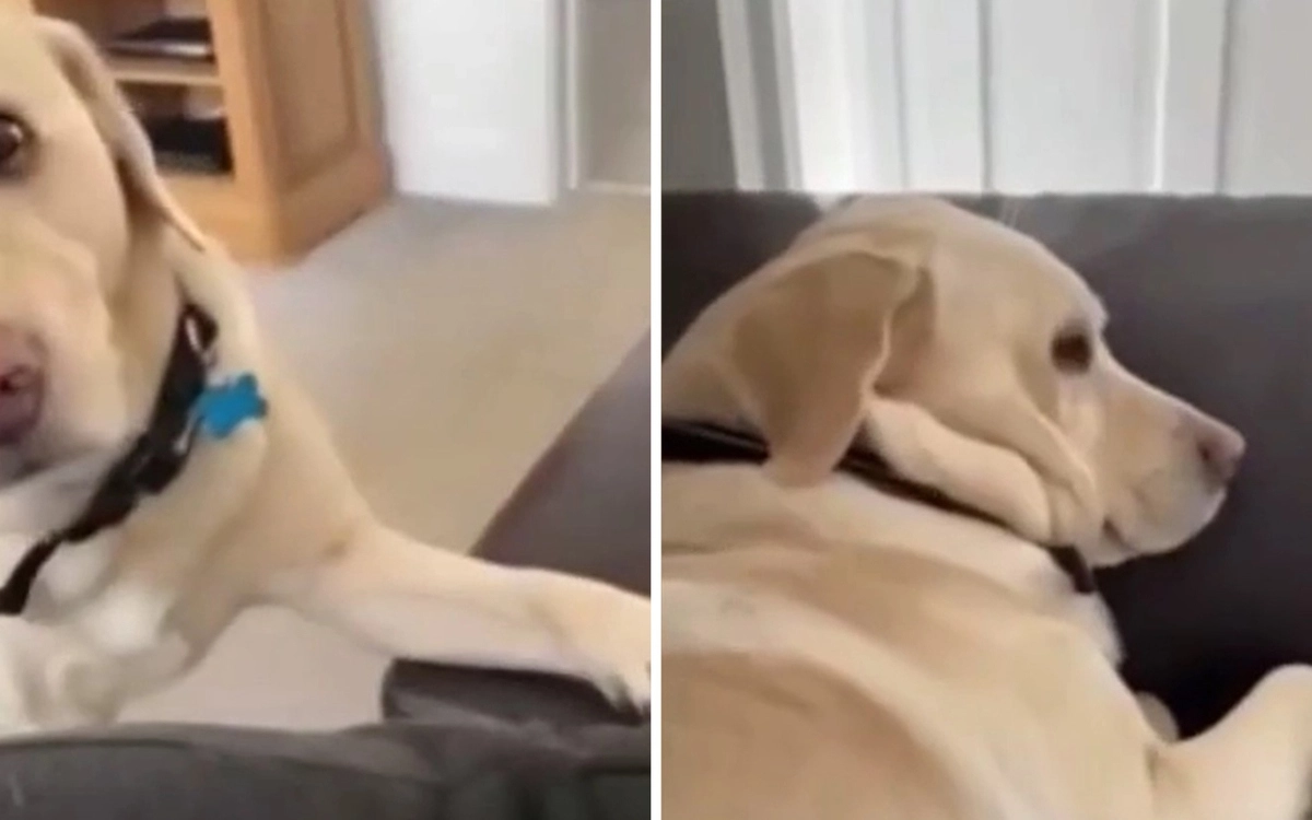 «Подвинься»: настойчивый пес попросил хозяина освободить место на диване