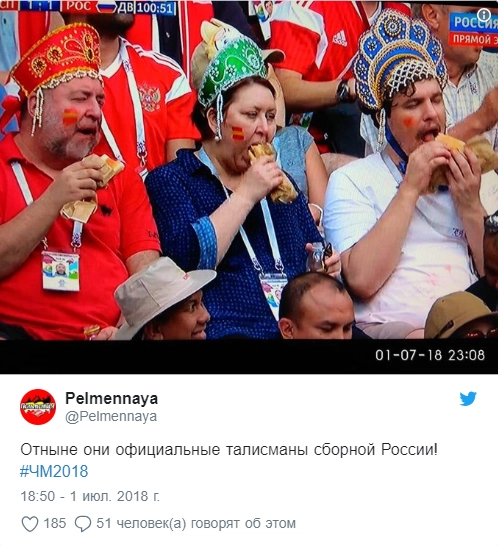 Поедающие хотдоги болельщики в кокошниках стали звездами Сети