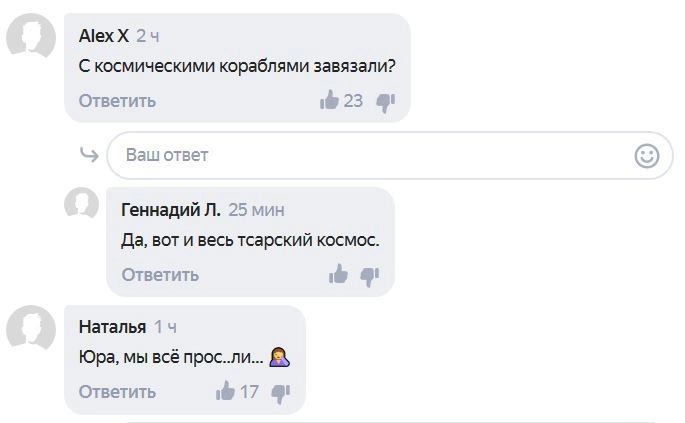 Один из комментаторов предложил использовать вместо «Поехали!» другое слово.