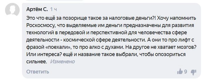 О том, что «Роскосмос» занимается не своим делом, заявил еще один пользователь.