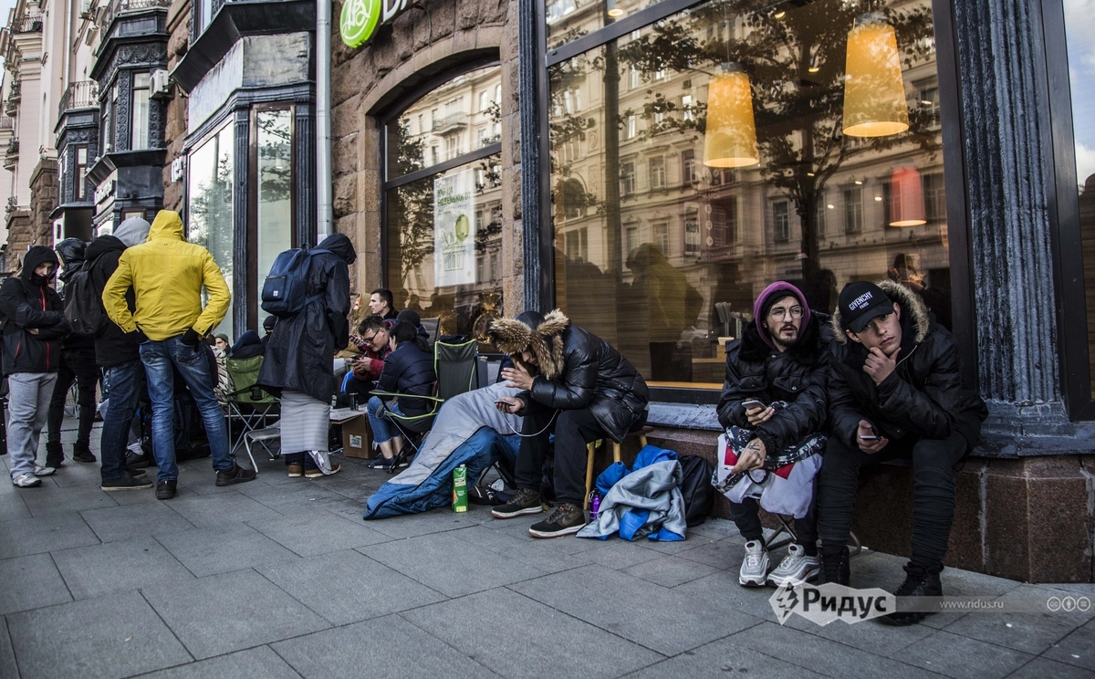 «В прошлом году старт продаж айфонов в России совпал со стартом в Америке и в Европе. В этом году у нас неделя разницы. Плюс ко всему покупатели видят, что перед магазином стоит много народу. И, если они не хотят стоять в очереди, они могут купить айфон в любом магазине телефонов. Кроме того, есть предзаказ — людям спокойнее заказать и потом прийти и забрать», — объяснила «Ридусу» представитель компании.