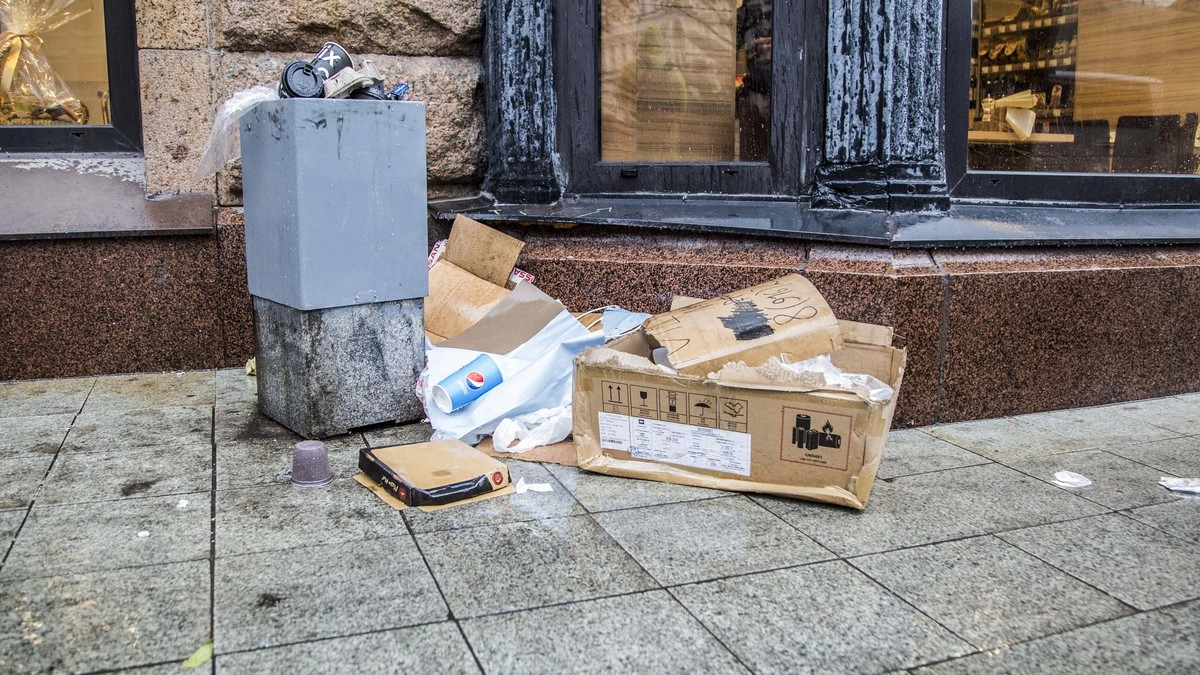 Ребята, которым не удалось продать места, шутят, что теперь будут испытывать судьбу в «Джойказино». Сейчас у здания re:Store в основном только журналисты, а в стороне на асфальте — стопка ненужных картонных объявлений.