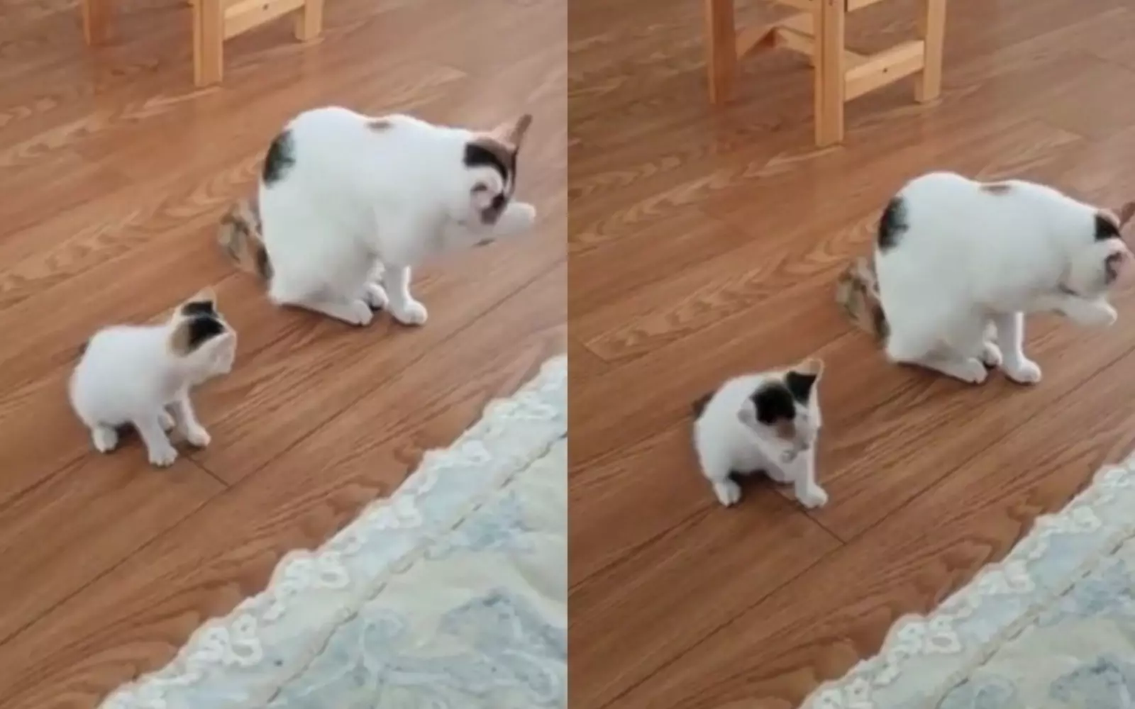 На видео попала мама-кошка, которая решила провести мастер-класс по умыванию для своего котенка, чтобы он наконец-то мог приводить себя в порядок самостоятельно. Во время занятия малыш начал умываться не с той лапы, но потом быстро исправился и стал все делать правильно.