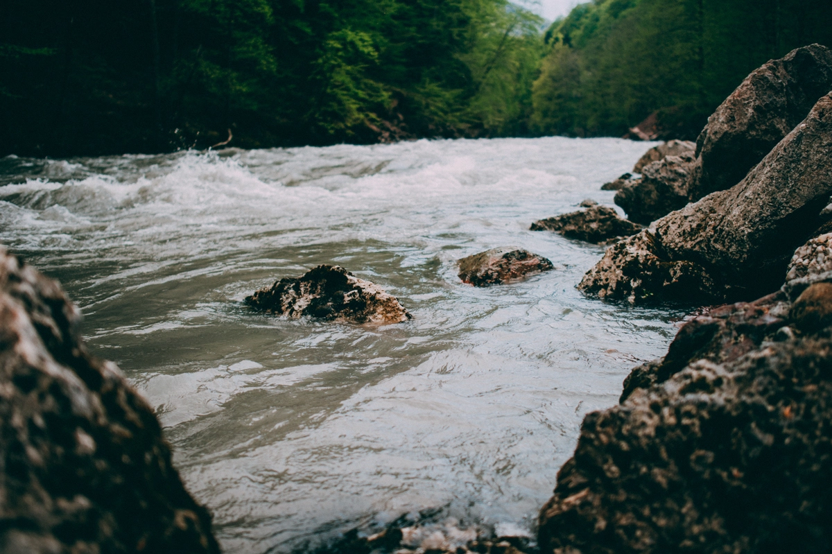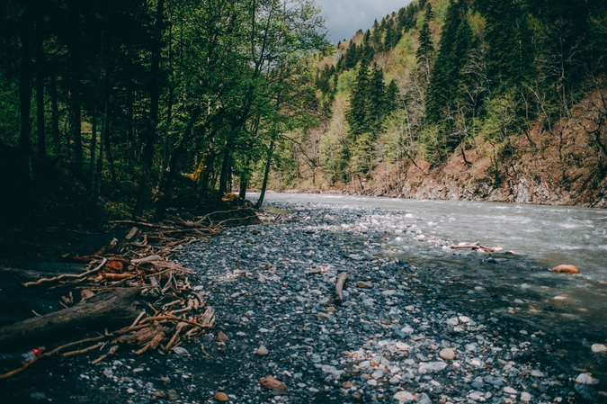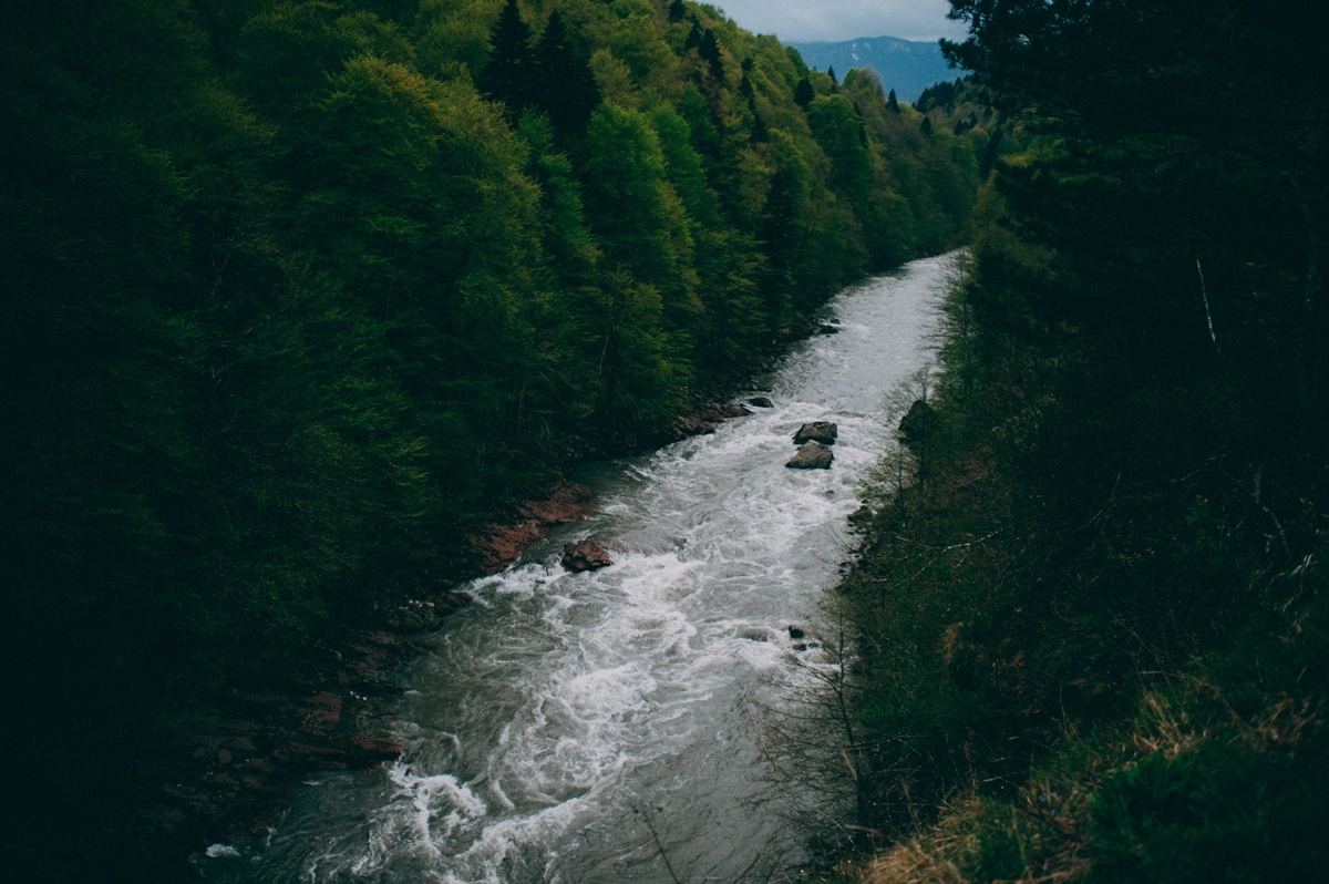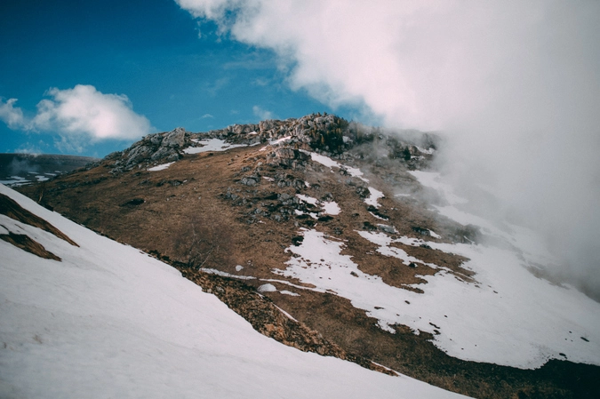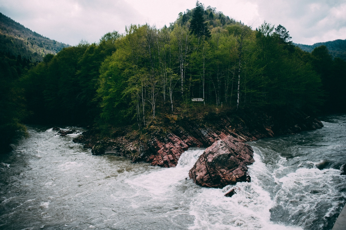 Адыгея, как и Крым, встретила нас уже привычным проливным дождем, но нам он был уже не страшен. Два дня мы находились на одном месте и сплавлялись по реке на катамаранах. В середине третьего дня мы отправились покорять снежную вершину горы Оштен. Автобус поднял нас на высоту 1600 метров и встал из-за снега, который лежал прямо на дороге. Отсюда мы и начали свое восхождение, взяв все теплые вещи, пледы, спальники, нагрузив в рюкзаки все, что может принести тепло. За несколько часов восхождения мы прошли около 400 метров в высоту по подножью и пригоркам. Наползающий сзади туман отсекал путь вниз, хотя мысли вернуться не покидали.