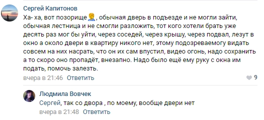 В итоге подозреваемый высунулся в окно и пригласил незадачливых стражей порядка пройти к нему через подъезд. Публикатор видео сообщил, что владелец квартиры был отправлен в следственный изолятор, а его гости, недавно освободившиеся из заключения, дают показания.