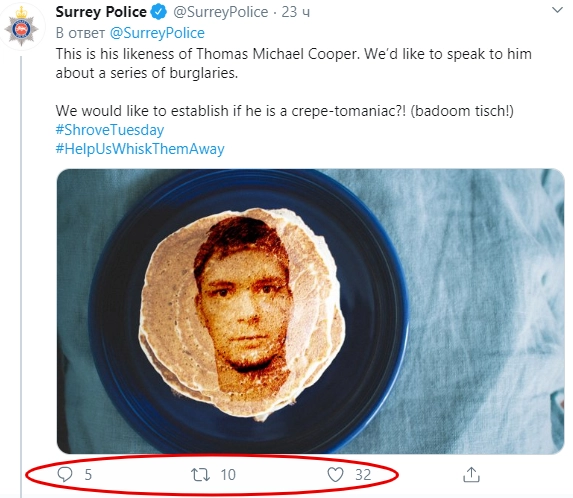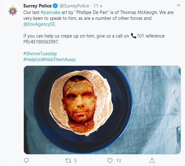 Подписчики Twitter полиции Суррея восприняли «креатив» с блинами неоднозначно. Одних он изрядно повеселил, но другие сочли, что он дискредитирует местных правоохранителей и выставляет их дураками.