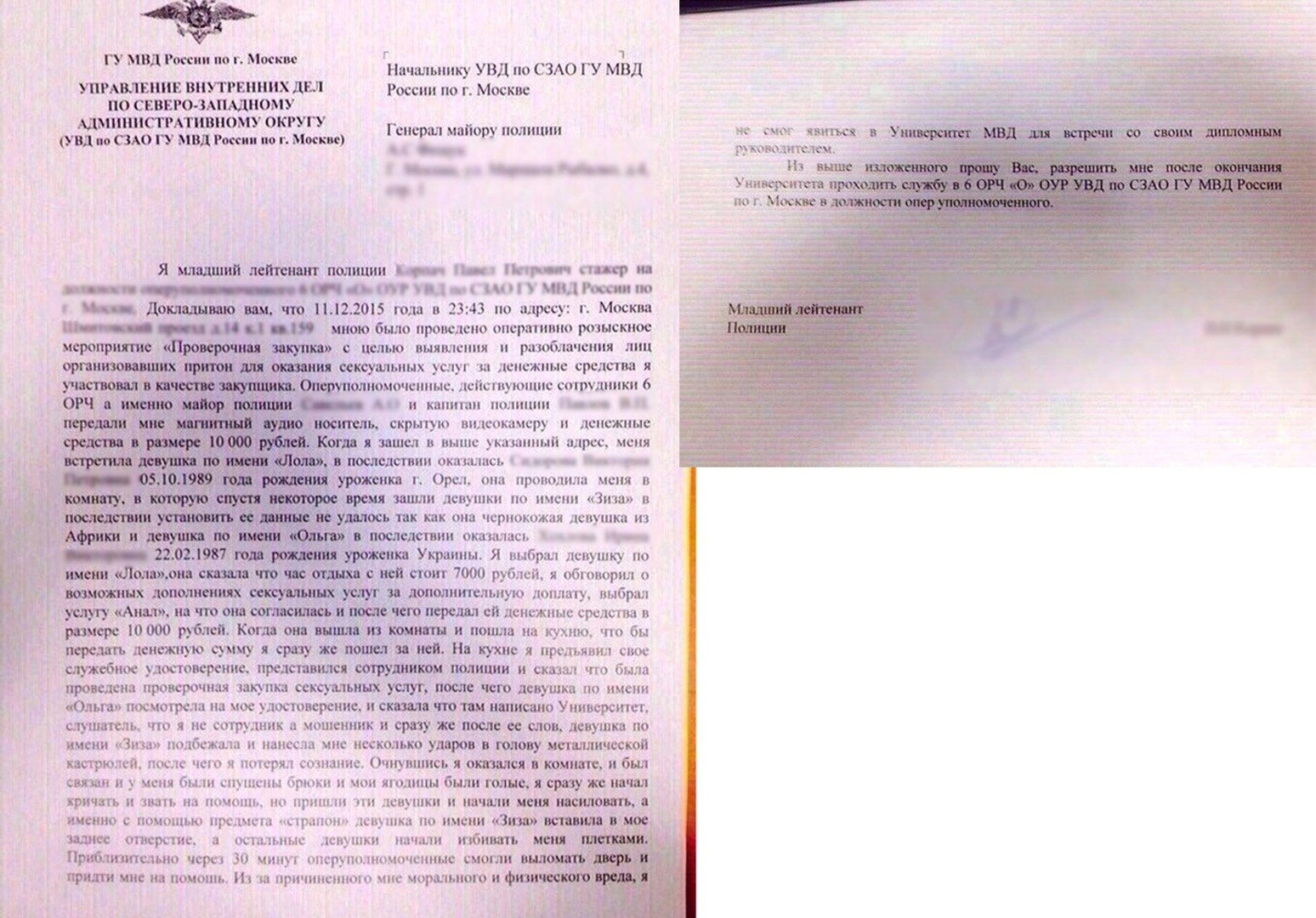 Московский полицейский подвергся изнасилованию со стороны трех проституток в одном из столичных борделей. Об этом он сообщил в объяснительной записке, оказавшейся в распоряжении телеканала «360 Подмосковье».
