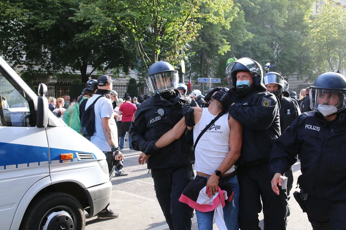 Представитель полиции Берлина подтвердил факт задержаний, но не назвал их точное число. По его словам, около двух тысяч человек собрались возле Колонны победы в районе Тиргартен. Люди не соблюдали предписанную «социальную дистанцию» и не носили защитные маски.