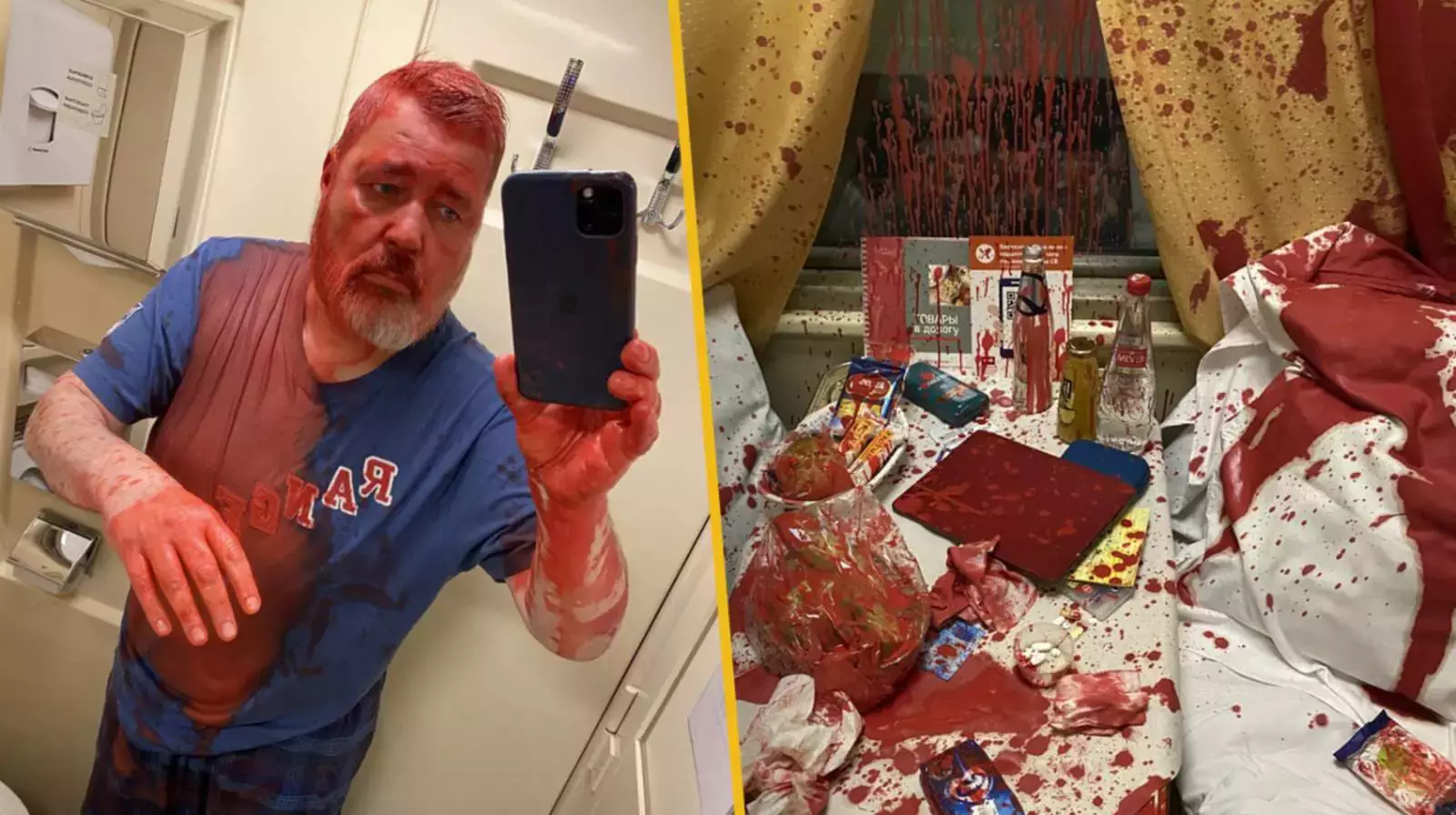 Инцидент произошел 6 апреля в поезде, оправляющемся с Казанского вокзала в Самару. Двое неизвестных в масках проникли в поезд, один из них зашел в купе к главреду «Новой газеты» и облил его красной масляной краской с ацетоном.