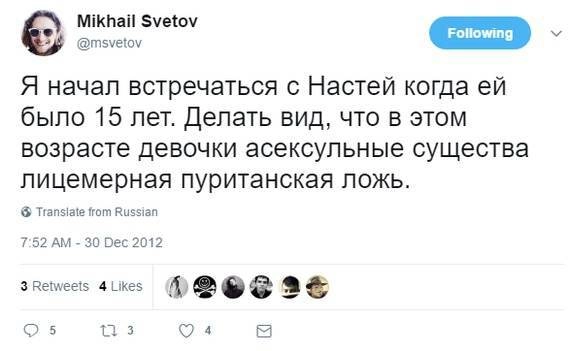 Еще пресса писала, что Светов является автором сайта, где размещались фотографии девочек 13−14 лет.