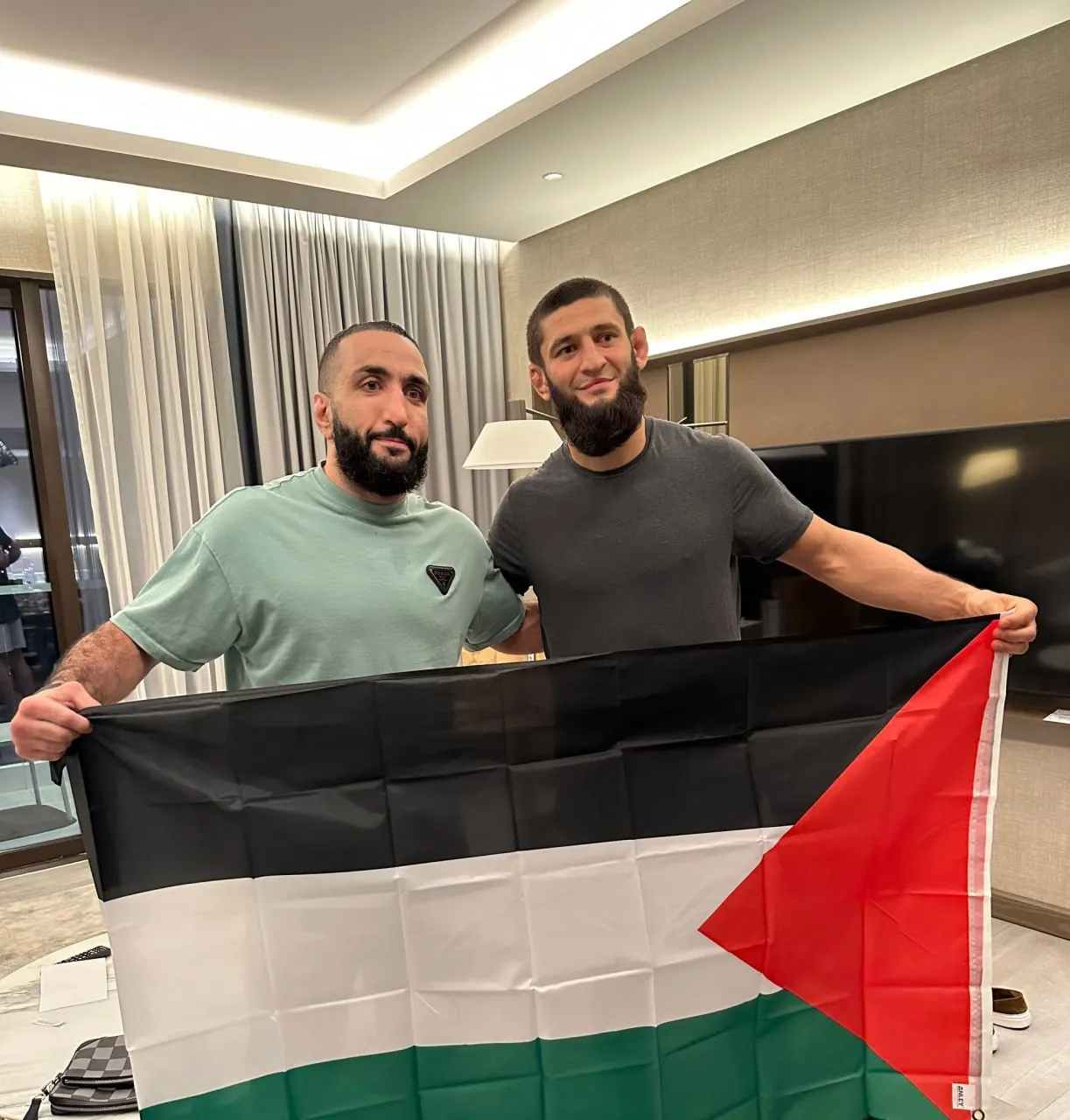 Арабо-чеченский боец UFC Чимаев и топовый полусредневес Белал Мухаммад опубликовали в соцсетях совместное фото с огромным флагом Палестины. С этого момента в Сети начался сущий кошмар.