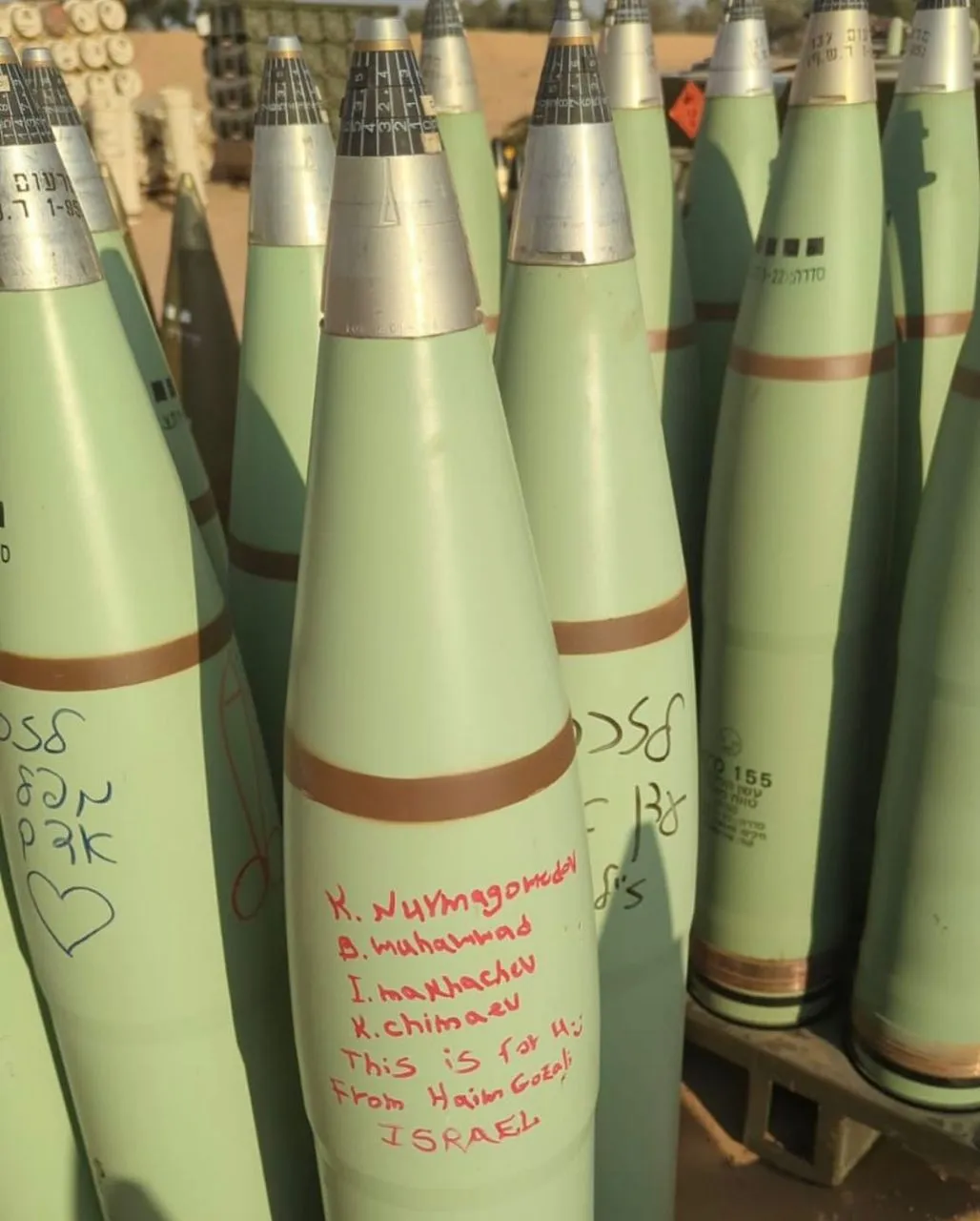 На одном из снарядов написаны имена бойцов, поддержавших сторону Палестины.