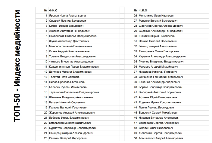 Здесь нужно учитывать то, что медийность депутата далеко не всегда равна его эффективности, — сказал Алексей Мартынов. — Например, 90% высокого медийного рейтинга Леонида Слуцкого обеспечила история с обвинениями депутата в сексуальных домогательствах. Аналогичным образом ситуация обстоит и с Натальей Поклонской, занявшей пятую строчку. Её медийность в основном связана не с депутатской работой, а с её религиозной деятельностью.