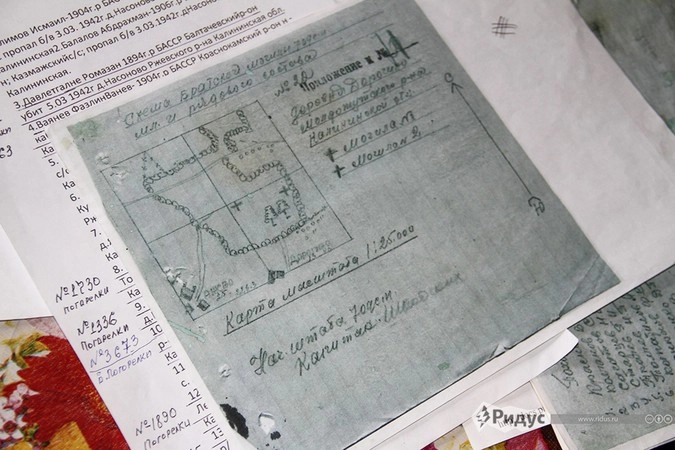 Впрочем, бог с ними, со взаимными претензиями. Интересна точка зрения Морозовых, почему они настаивают на захоронении останков именно в Погорелках. Казалось бы, не все ли равно? Дело в том, что в официальных документах многие погибшие солдаты РККА, найденные Морозовыми, уже числятся похороненными в Погорелках, хотя реально могут лежать совсем в другом месте. «Если мы захороним во Ржеве, то солдаты навсегда будут потеряны для родных. Они уже числятся здесь. Такие бумажные переносы, как мы их называем, поисковики, они были в пятидесятые годы. Сейчас мы требуем с военкомата справку: с каких деревень они были перенесены сюда, а я их сейчас нахожу», — рассказывает Виктор Морозов. Речь идет о тех самых могилах, указанных на старых картах.