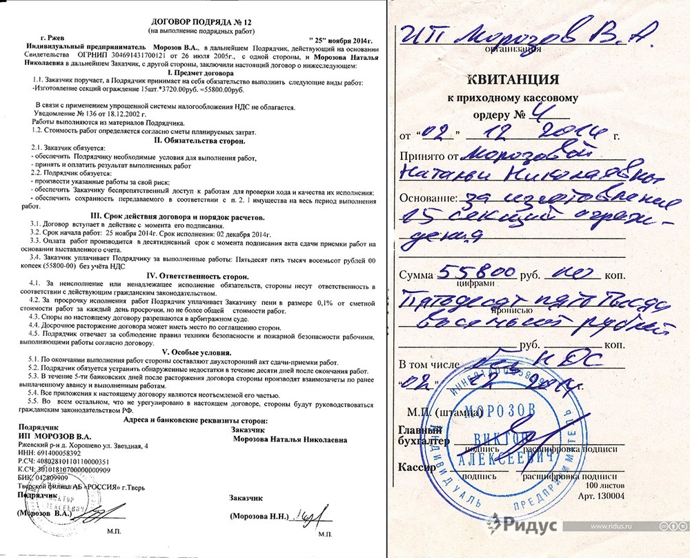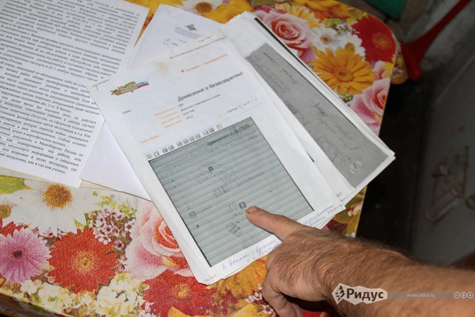 «Валерий Михайлович говорит, что мы якобы не сдаем взрывоопасные предметы. Все сдаем. У нас акты все-все-все по сдаче, абсолютно все, что мы сдаем. Вот эта куча — это все по оружию и взрывоопасным предметам», — говорит Наталья Морозова, показывая пачку документов. Ей с обидой вторит муж: «Три тысячи снарядов сдали и всякой дряни, единственный отряд в Тверской области. Вот, „эмчээсники“ грамотой отметили». Письмо о том, что Морозовы — единственные, кто ухаживает за воинским кладбищем, и вовсе подписали все жители деревни… «Все подписались, что это мы убираемся. Больше никто, хотя Валерий Михайлович везде абсолютно отчитывается и посылает, что убираются не Морозовы, а специально нанятые люди», — продолжает Наталья.