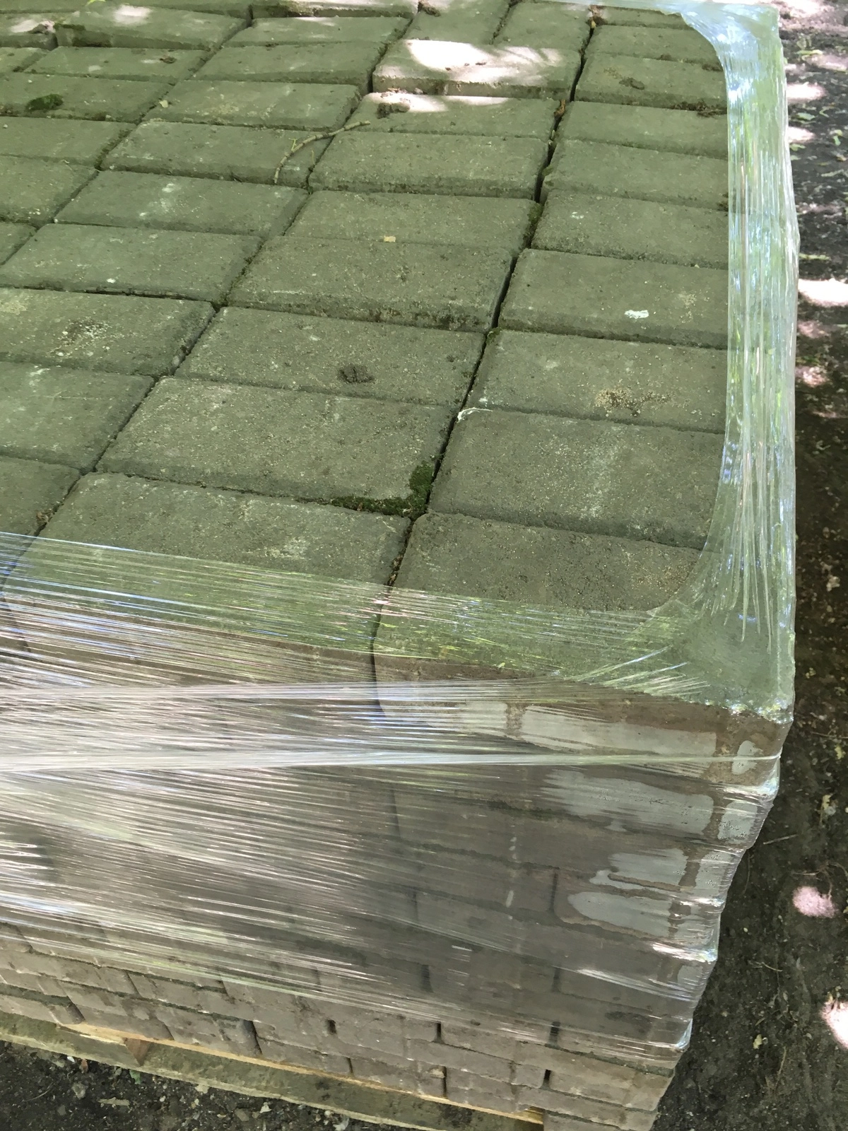Брусчатку не сбрасывают в отходы, как уголки бордюров, а отряхивают от земли, аккуратно укладывают на поддоны, запаковывают и быстренько куда-то увозят.
