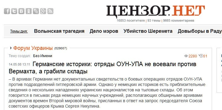 «То есть, бандеровцы не воевали против Гитлера, а грабили склады. Проще говоря, мародерствовали», — прокомментировал эту информацию Сергей Никулин. Любопытно, что в 2008 году этот материал опубликовал весьма пропагандистский украинский портал «Цензор.нет».