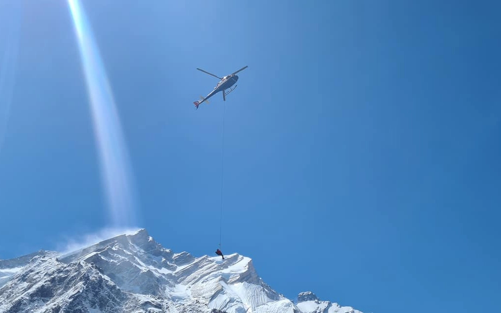 На вертолете поляк и команда спасателей добрались до места, где укрывались замерзающие российские альпинисты