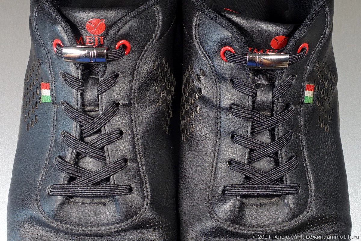 Первые впечатления от полуавтоматических шнурков отличные, но я слегка перетянул шнурки и сделал их слишком короткими. Не повторяйте моей ошибки: лучше сначала отрезать с небольшим запасом, а потом при необходимости укоротить шнурки. Надо будет заказать ещё кучу для всех имеющихся кроссовок и ботинок.