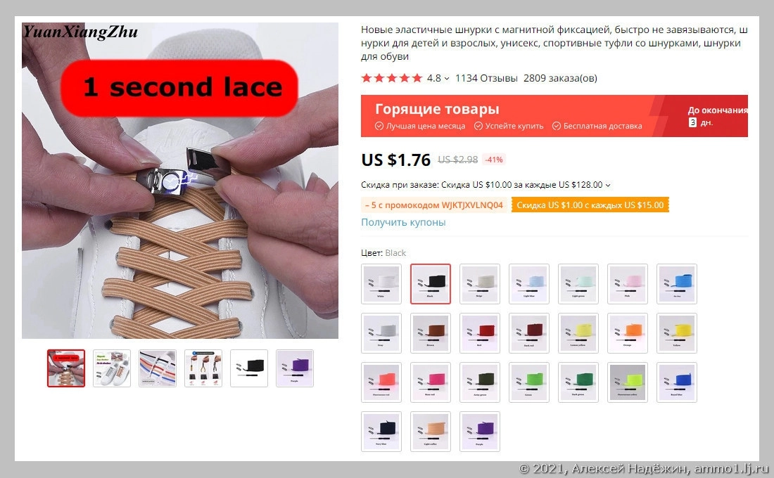 На Aliexpress всего за $1.76 продаются шнурки, которые не нужно завязывать бантиком.