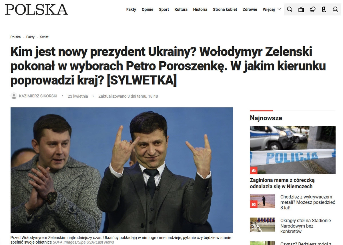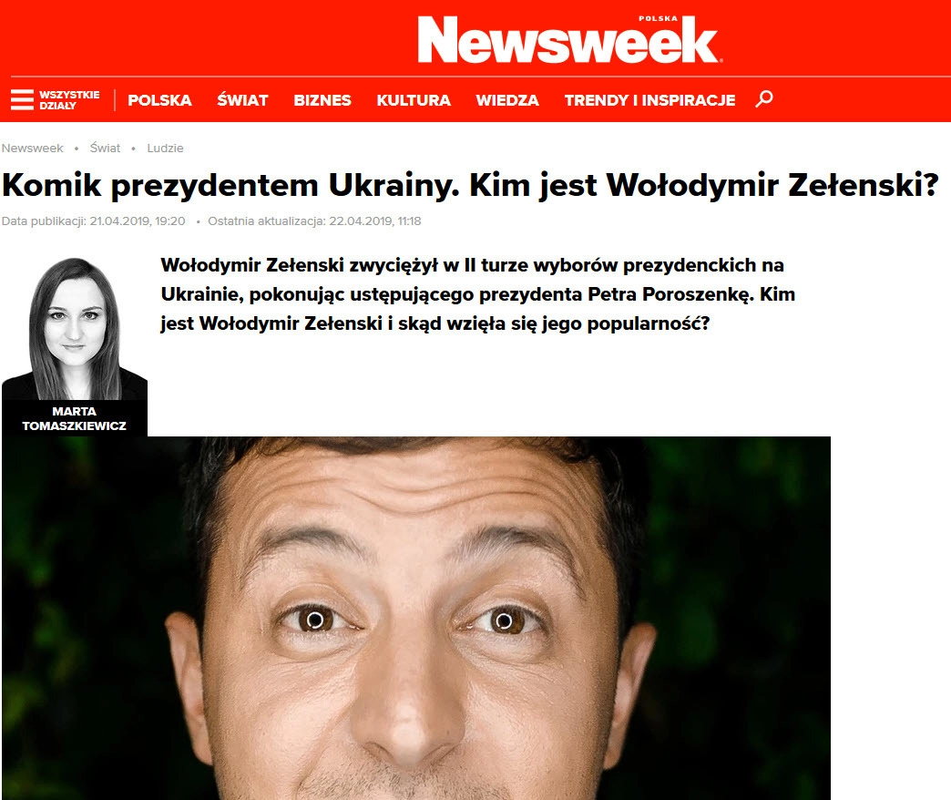 Личность Владимира Зеленского вызвала в Польше повышенный интерес сразу же после того, как тот набрал 30% голосов в первом туре президентских выборов на Украине. А по мере приближения второго тура и после его окончания в польском медиапространстве появилось множество материалов, в которых журналисты, политологи и эксперты пытаются разобраться кем является Зеленский и спрогнозировать как будет проходить его пребывание на посту президента.