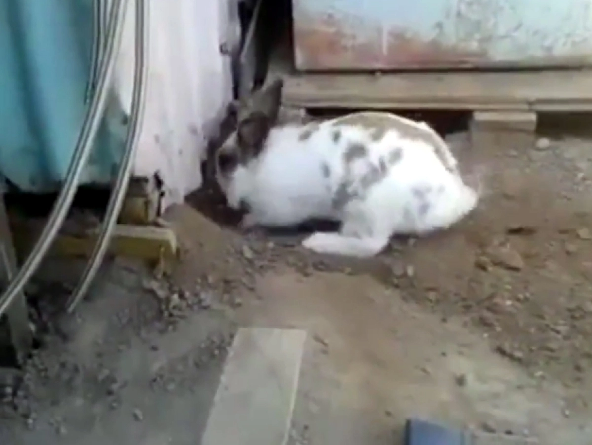 Мощные кроличьи лапы гораздо лучше роют землю, чем кошачьи. Всего за минуту был готов надежный путь на свободу.