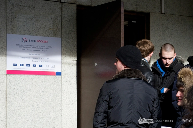 Очередь людей, решивших поддержать банк «Россия», который подвергся санкциям со стороны США, не умещается в отделении банка – народ собирается на улице, сообщил корреспондент «Ридуса» с места событий. В основном, новыми клиентами банка «Россия» желает стать молодежь, но в очереди заметны и пенсионеры.