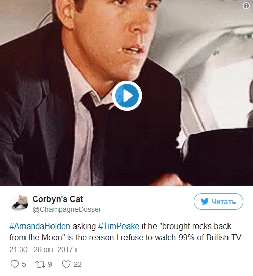 «Аманда Холден, спрашивающая Тима Пика о том, привез ли он камень с Луны, — причина, по которой я отказываюсь смотреть 99% программ на британском телевидении».
