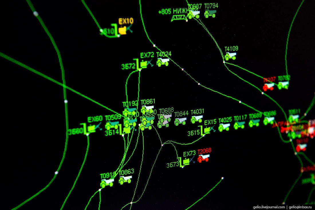 Всеми передвижениями горной техники на разрезе управляют диспетчеры и горные мастера. В любой момент можно получить информацию о местоположении, скорости движения, статусе работ и даже температуре в тормозных колодках.