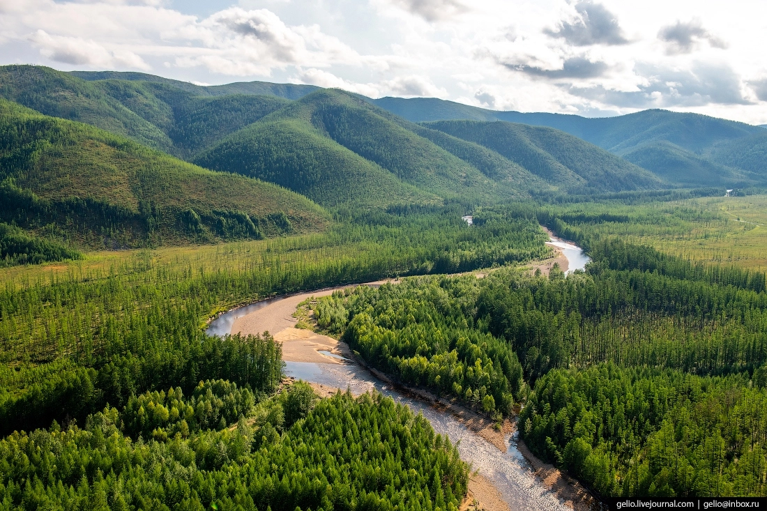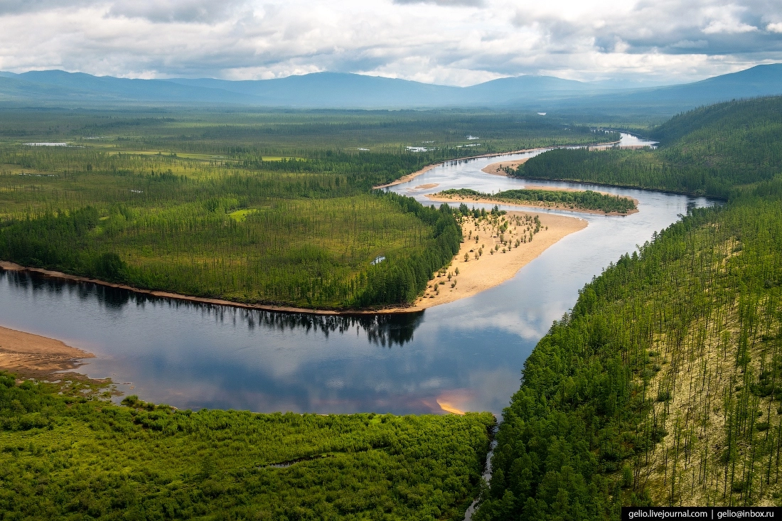 Природа Южной Якутии: вид на реку Гонам. Она протекает через два региона: Якутию и Хабаровский край.