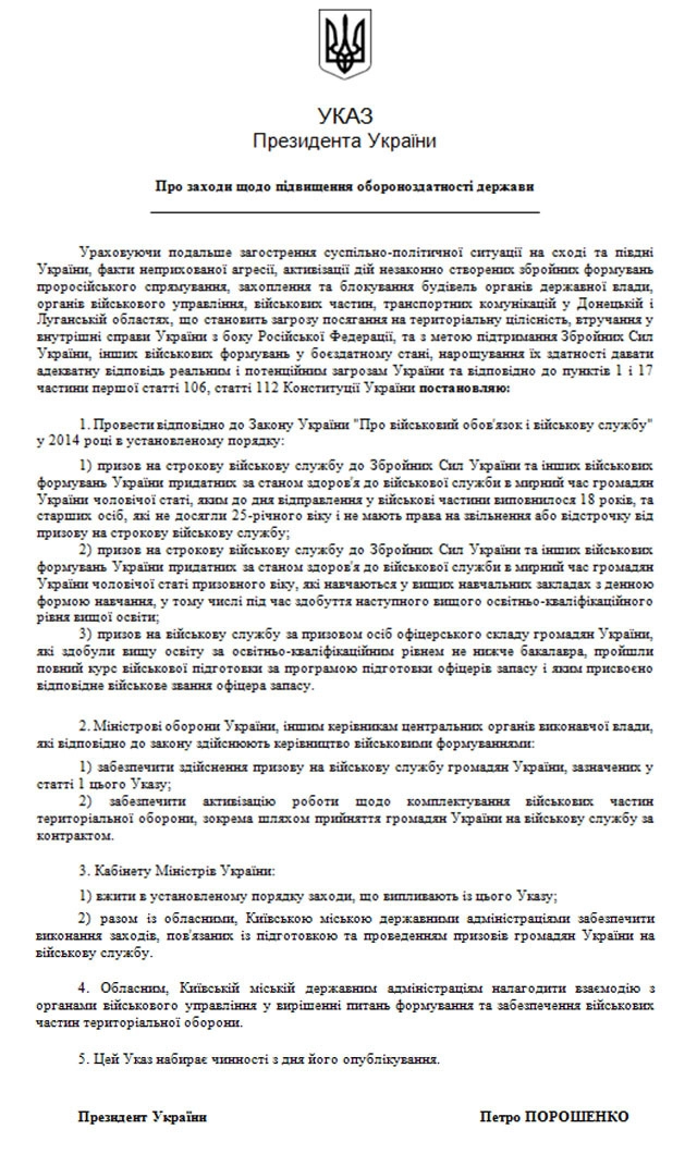 Хакерами получена информация о том, что на экстренном совещании СНБО принято решение о возобновлении призыва в Вооруженные силы Украины с осени этого года. Это подтверждают документы, полученные в результате взлома внутренней сети Министерства Юстиции Украины. На захваченных компьютерах «КиберБеркут» обнаружил проект указа президента, который проходит юридическую экспертизу. В документе сказано, что на этот раз будут призываться и студенты высших учебных заведений, обучающиеся по дневной форме обучения.