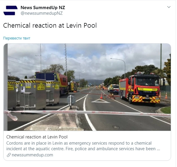 Утечка химикатов стала причиной эвакуации посетителей общественного бассейна в новозеландском городе Левин. По данным местных спасателей, один из пострадавших оказался в больнице в тяжелом состоянии.