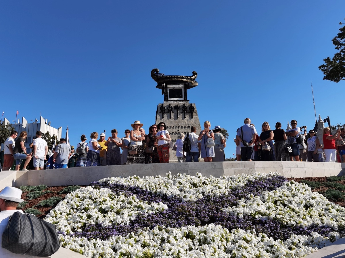 Торжественное открытие началось с восхождения Алексея Чалого и врио губернатора Севастополя Михаила Развожаева к памятнику Казарскому. Под барабанную дробь они возложили цветы и попытались пройти под аплодисменты через плотное кольцо людей.