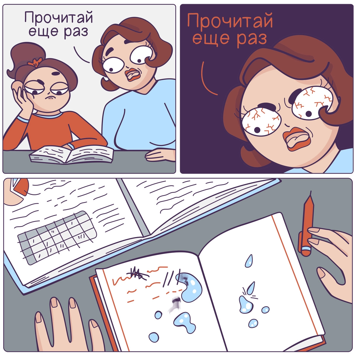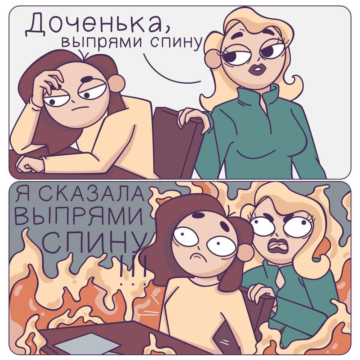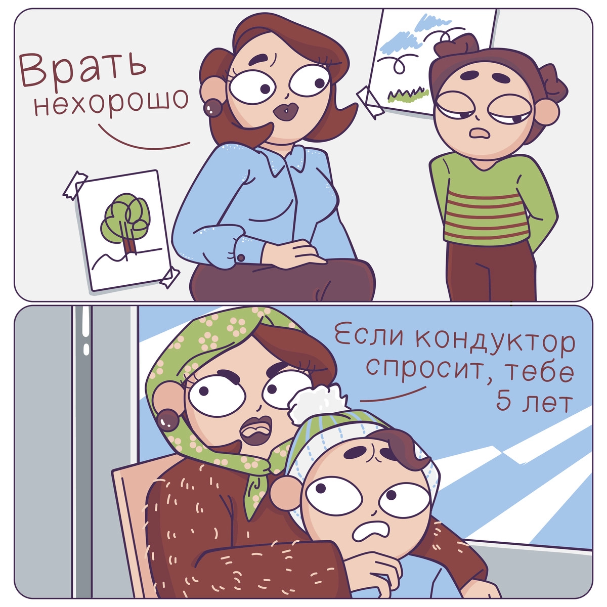 В своем Instagram Мама Блу продолжает радовать подписчиков своими комиксами. Теперь под прицел художницы попали странные детские истории, которые не вызывают вопросов, когда ты маленький, и очень глубоко удивляют, когда ты взрослеешь. Ведь всем же нам говорили врать кондуктору что тебе 5, все мы решили домашку ночью до последней слезы и всех нас матери слезно просят не сутулиться.