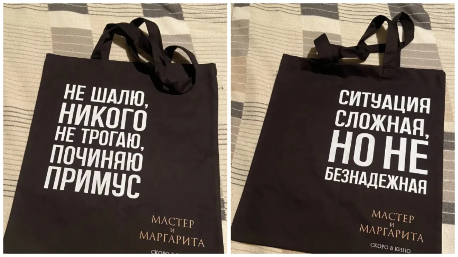 За 750 рублей на площадке можно купить шоперы с надписями «Ситуация сложная, но не безнадежная» и «Не шалю, никого не трогаю, починяю примус». Те, кто успел посмотреть фильм, наверняка оценят. В объявлении указано, что шопер удобный и очень качественный. Продавец получил его на презентации фильма.