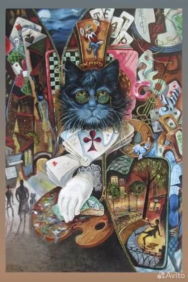 Для истинных ценителей романа и искусства в Санкт-Петербурге продается картина маслом на холсте «Кот Бегемот. Мастер и Маргарита». Художник Михаил Губкин пишет на заказ похожие картины разного размера по цене от семи до ста двадцати тысяч рублей. Так, картина как на фото размером 110 × 70 сантиметров будет стоить 80 тысяч. При написании полотна художник сделал около десятка слоев, благодаря чему картина отражает и преломляет свет. По словам продавца, полотно выглядит очень живым, будет долго служить своим хозяевам и впишется в любой интерьер.