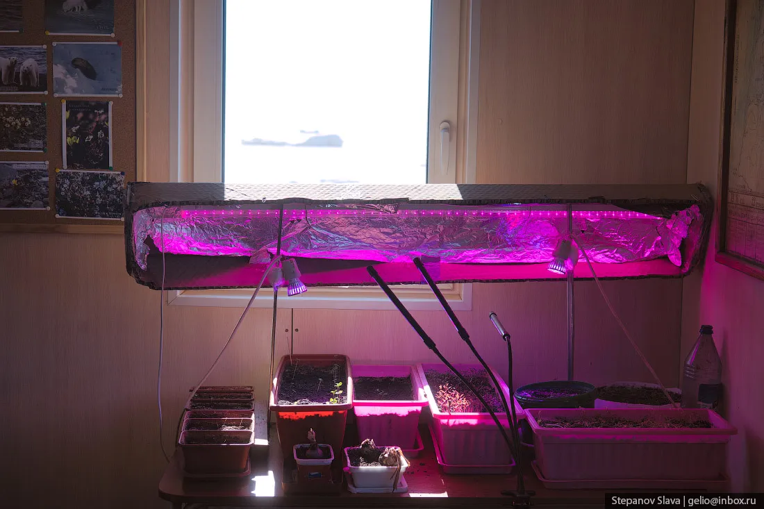 44. На Северной Земле овощи и более теплолюбивые растения вырастить невозможно. Работники «Мыса Баранова» выращивают их на небольших искусственных грядках внутри домов.