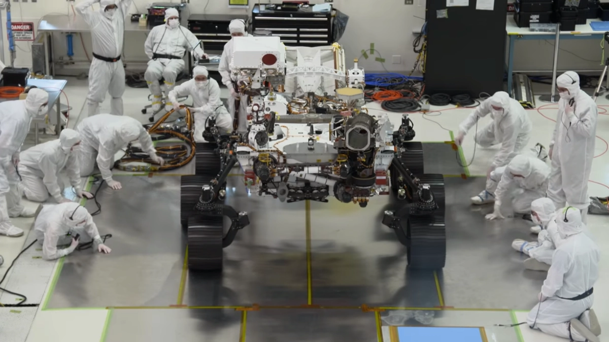 Руководители миссии Mars 2020 опубликовали новые данные о подготовке марсохода к полету на Красную планету в следующем году. Недавно роверу установили колеса, а сейчас марсоход учится делать «первые шаги».