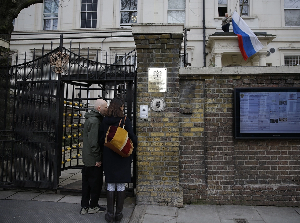 Затем Лондон провел кампанию по высылке российских дипломатов из стран ЕС и ряда других государств. В ответ на это Москва заявила, что Британия должна сократить штат посольства и генконсульств в России до числа российских дипработников в Британии.