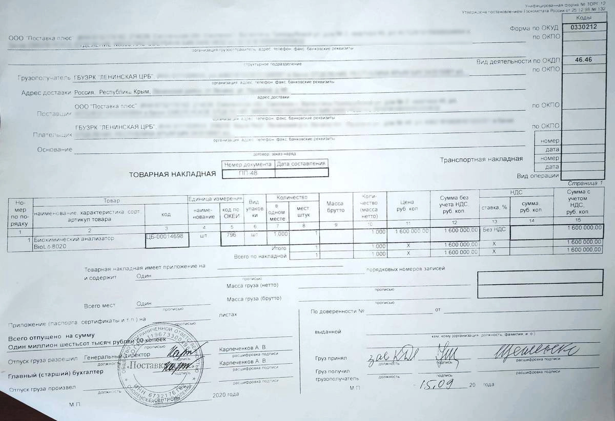 «У нас была модернизация в период с 2016 по 2019 годы, за это время Минздрав Крыма поставил нам бесплатно чешский биохимический анализатор, две фирмы передали нам в безвозмездное пользование три замечательных анализатора: чешский, германский и американский. В 2020 году новый главврач решил вернуть обратно высококлассное оборудование и вместо него закупить китайские анализаторы фирмы „Корвей“», — поясняет Щегленко. — Вот и все его реформы. Он всё вернул обратно и закупил на 3,2 миллиона аппаратуру, которую устанавливали силами менеджера по продажам от фирмы поставщика, не привлекая к наладочным работам представителей сервисной службы. Я была категорически против этого, но меня обвинили в саботаже.