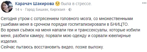 Корреспондентка агентства «Радар» Карачач Шакирова сообщила о нападении представителей секс-меньшинств.