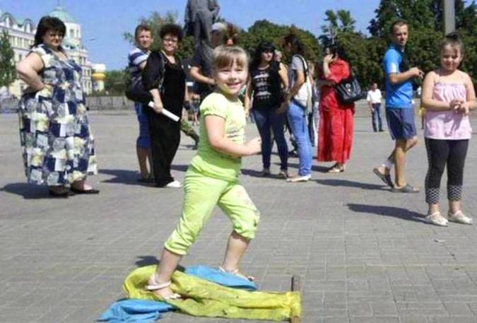Ранее во время парада кто-то из взрослых бросил флаг на площадь, где шли пленные украинцы, а поливальные машины смыли его на бульвар. Снимок он охарактеризовал примерно так, что в Донецке остались одни нелюди, его подписчики стали повторять ему, что Донецк надо сравнять с землей, жителей Донецка за людей не считать. Самое гуманное пожелание было — тотальная депортация в РФ.