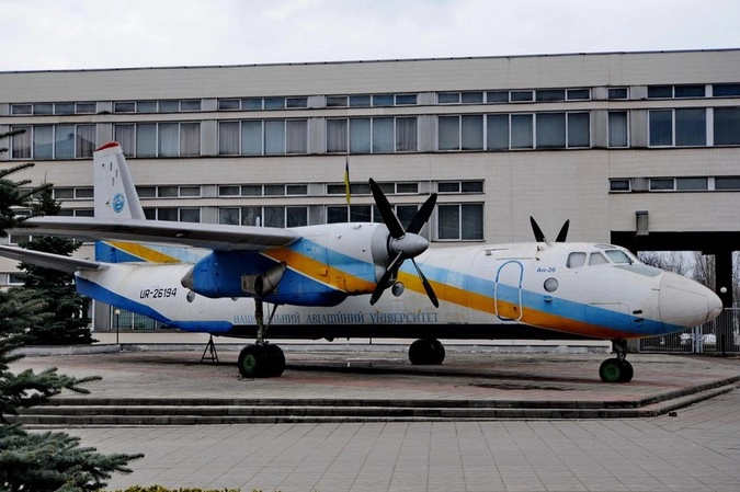 В Киеве, прямо на улицу Космонавта Комарова приземлился самолет Ан-26. Памятник стоит напротив здания Национального авиационного университета. Не все знают, но это далеко не единственная авиационная достопримечательность в этом районе - всего в нескольких шагах от этого Ана находится доступный для посещения крупнейший в Европе учебный ангар с шикарной коллекцией самолетов и вертолетов.