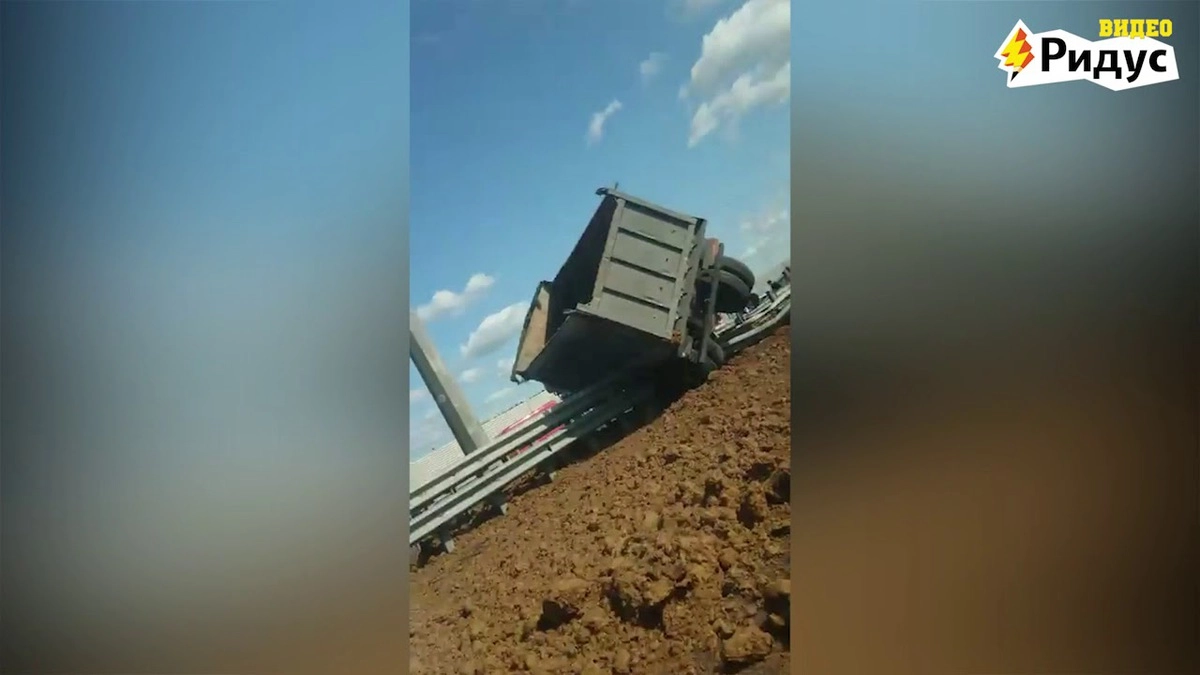 Повисший на отбойнике Новорижского шоссе самосвал сняли на видео