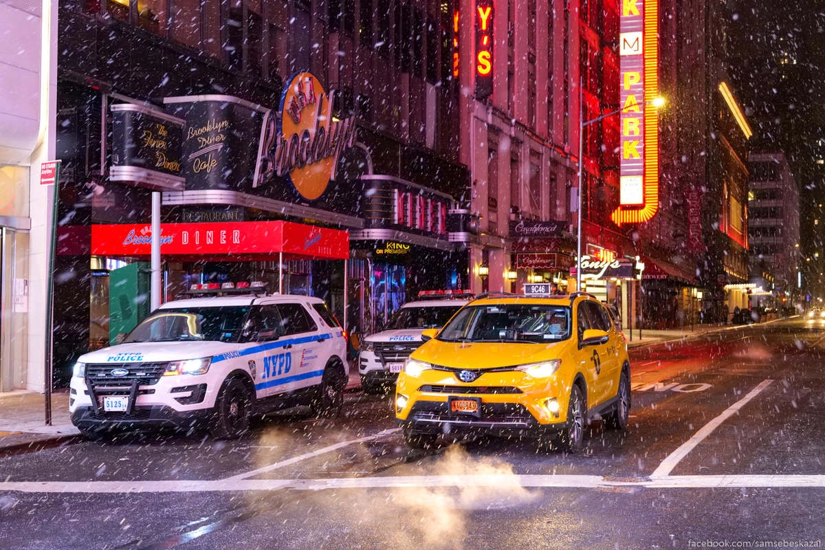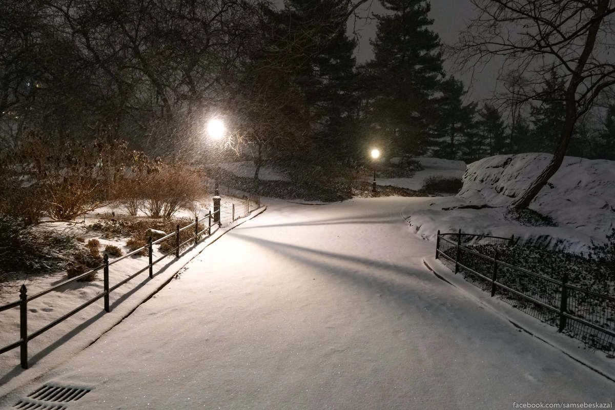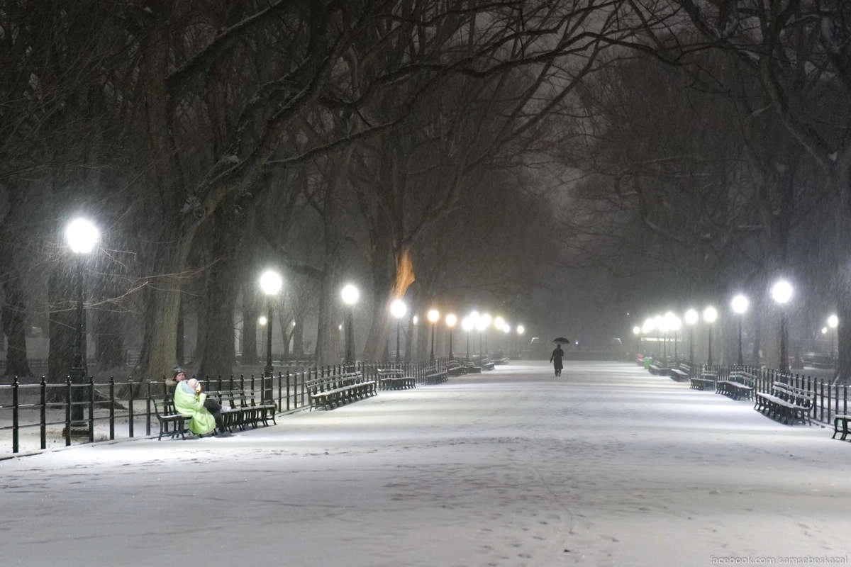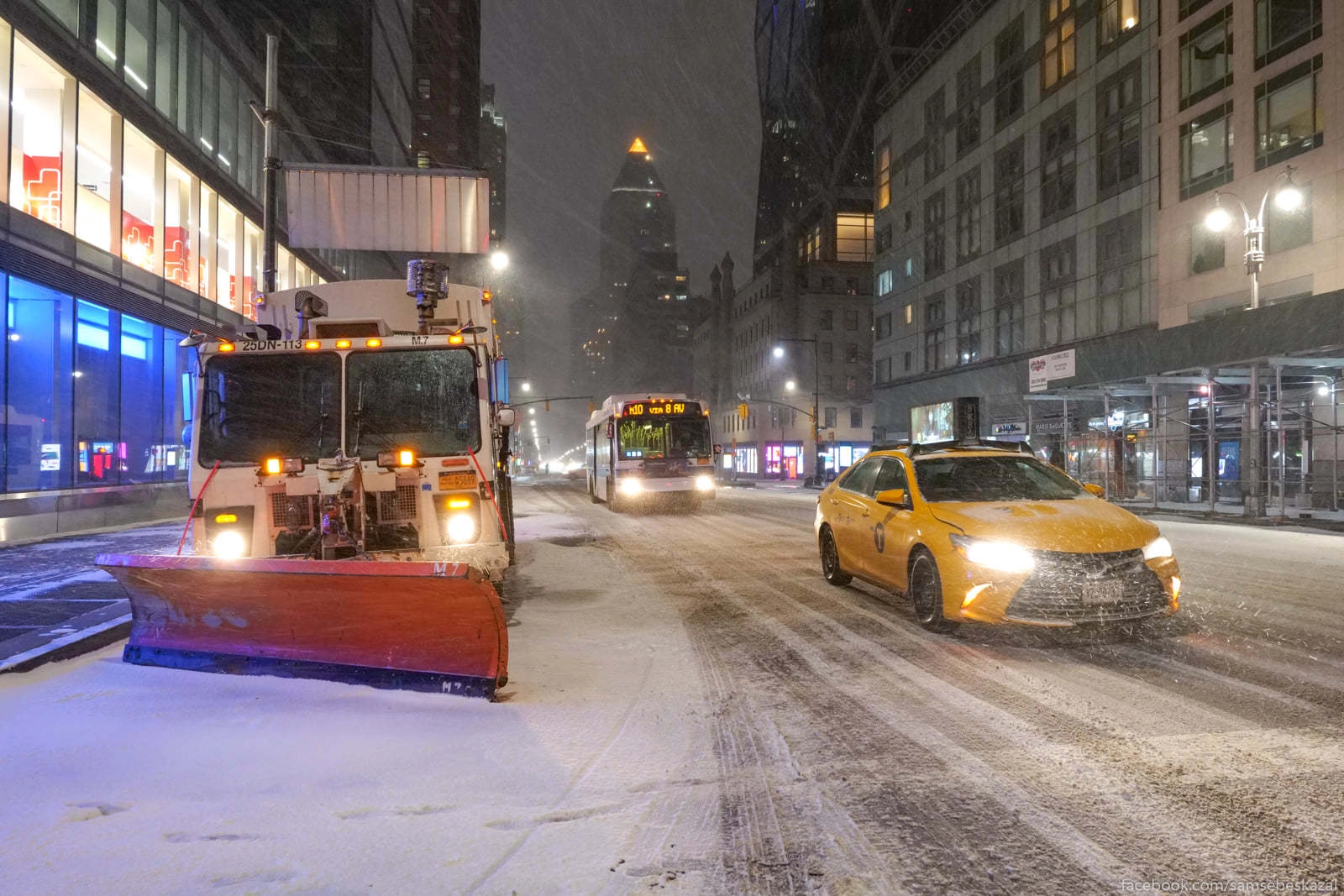Все едут в снегопад на Таймс-сквер, но это, наверное, самое убираемое в городе место. Картинки с занесенными снегом улицами точно надо снимать не там.