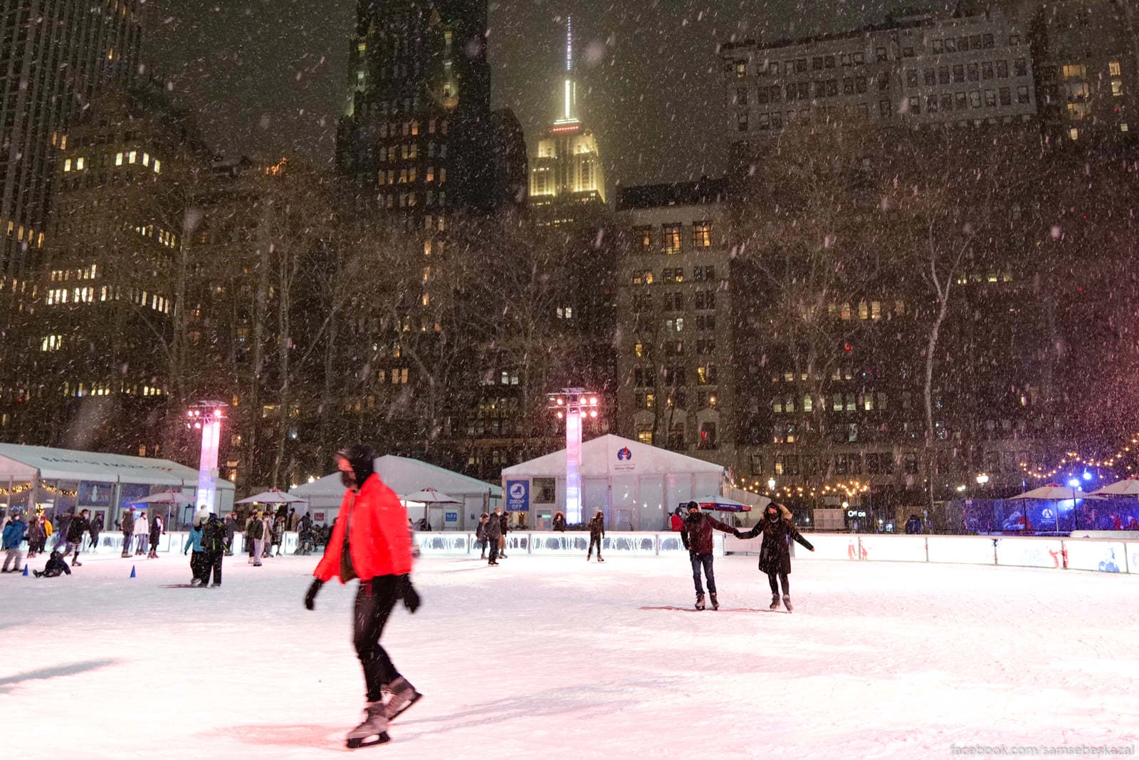 В Брайант парке чудесная зимняя погодка и работающий каток.