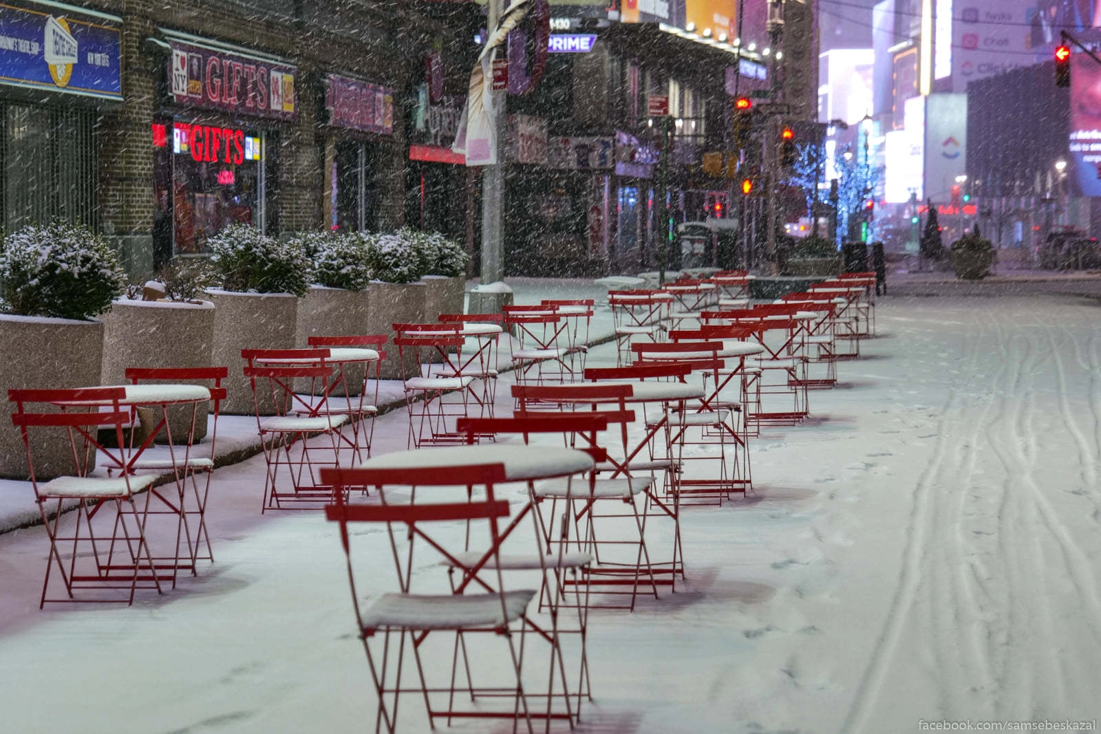 Столики на Бродвее. Думаю, что к утру он и превратились в сугробы.